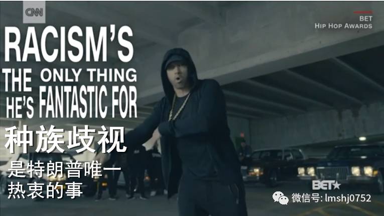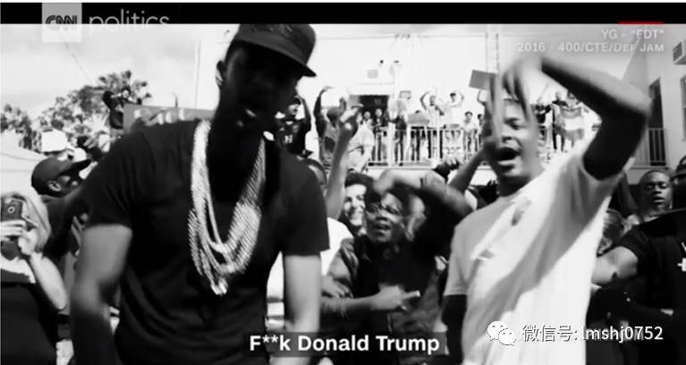 (美媒报道视频截图,其他嘻哈歌手也在歌词中怼特朗普。)
