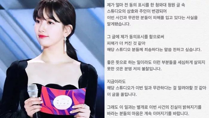 因此工作室方面对于秀智利用自己的影响力,使工作室陷入舆论的事情提出了抗议。对此秀智在SNS上发长文诚恳地表示了道歉,承认是自己考虑不周。