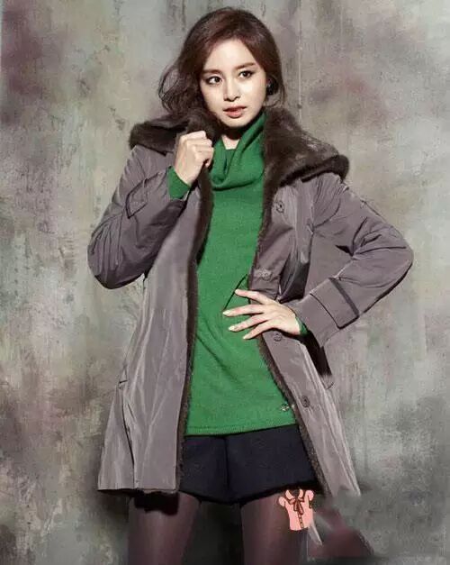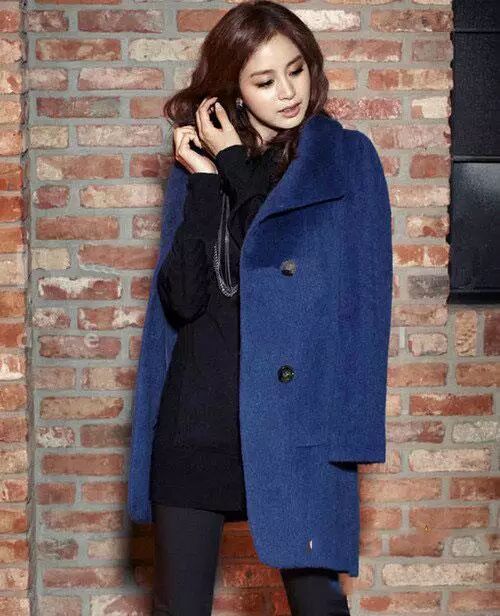 今年超流行的韩式风格,大翻领棉衣搭配连裤袜,淑女装扮利落干练。拼色 连衣裙 +棉衣,下搭中筒袜+裸靴,潮范十足。