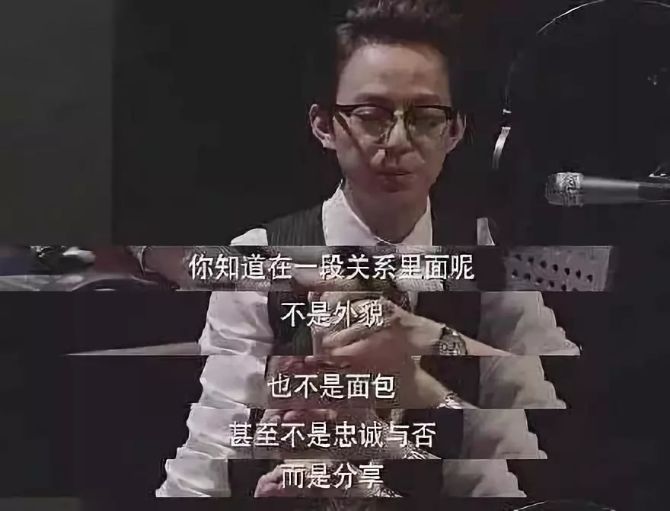 “你知道在一段感情里,什么最重要?不是面包、不是外貌,甚至不是忠诚与否,而是分享。”