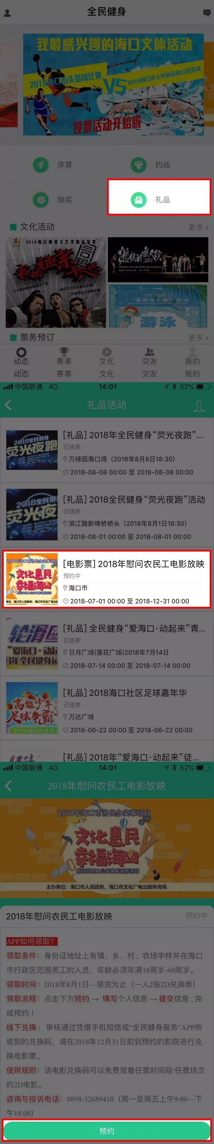线下兑换 : 凭借手机短信或“全民健身服务”APP所收到的兑换码,请在2018年12月31日前到预约的影院进行兑换电影票。