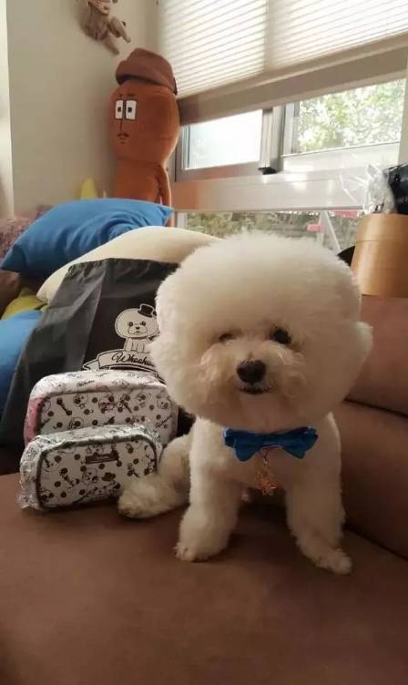 对于家里的狗狗,蔡依林也是要讲究的,要给它舒服的狗窝和玩具,打扮得美美的。