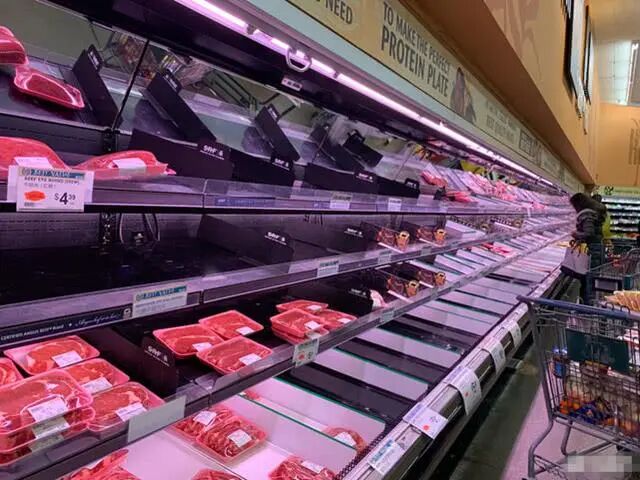 从徐娇晒出的照片中,可以看到,美国超市中,粮米架被贴上了限购一包的公告,肉品架上的货物也已所剩无几。据悉,22岁的徐娇目前在美国修读电影课程,她经常会在微博上分享自己留学美国期间的生活。然而,目前美国因新型冠状病毒的影响,也掀起了超市的“抢购潮”。