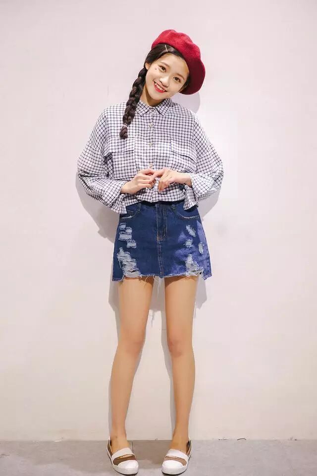 小清新的格子衬衫,破洞的牛仔短裤,减龄学院范,搭配一双小白鞋,秒回18岁。