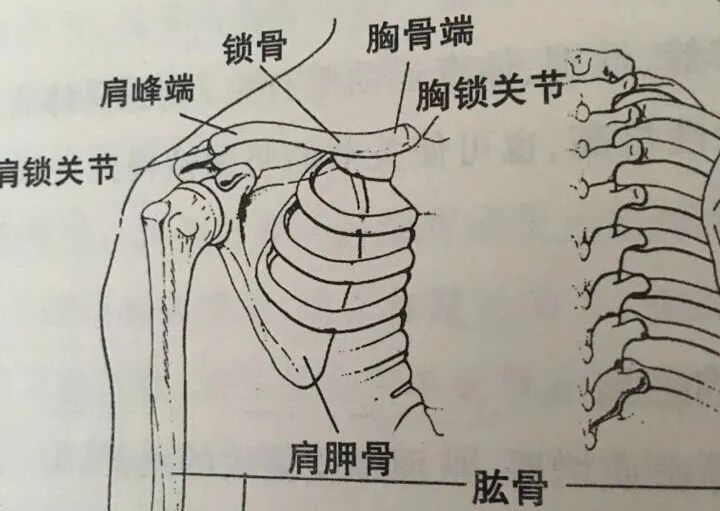 简单概括,它就是连结肩胛骨与胸骨,横架于胸廓前上方,呈倾倒的“S"型的这处细长骨。