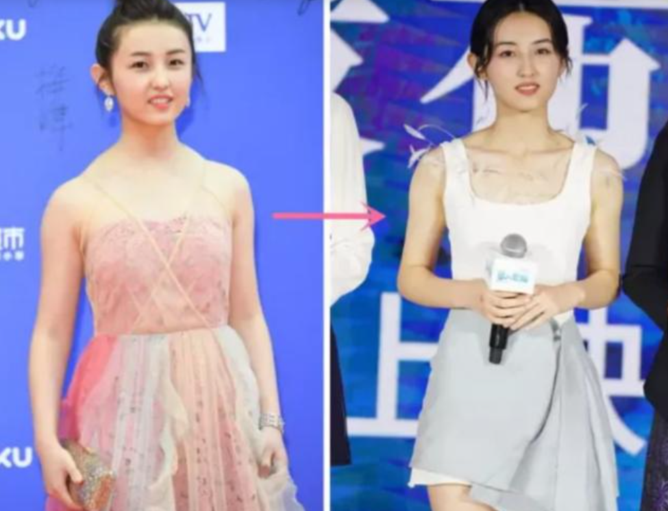 像张子枫妹妹,之前大家总感觉她斜方肌宽厚高耸,其实一大部分原因也是因为颈肩周围脂肪含量相对较高,减脂后张子枫的五官轮廓也立体了很多。