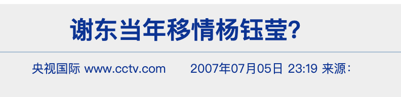 有媒体曝出,杨钰莹插足谢东和戴娆的感情。还有“被戴娆捉奸在床”这样的小道消息在默默发酵。