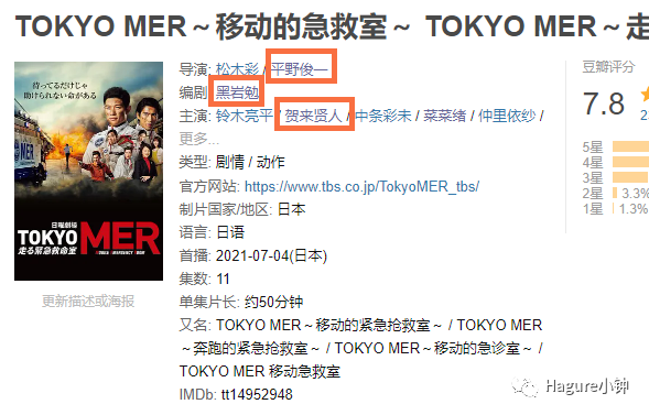 首先,导演平野俊一、编剧黑岩勉、主要角色里还有贺来贤人,让人秒回《Tokyo Mer》。虽然我个人不太喜欢“Tokyo Mer”,但这种同一套演职员阵容的新剧,想必会让很多“Mer粉”激动不已吧。