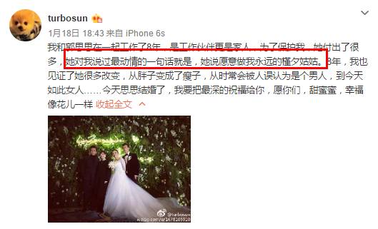 婚礼结束后,脱下婚纱的郭思,很快就陪孙俪去工作了。
