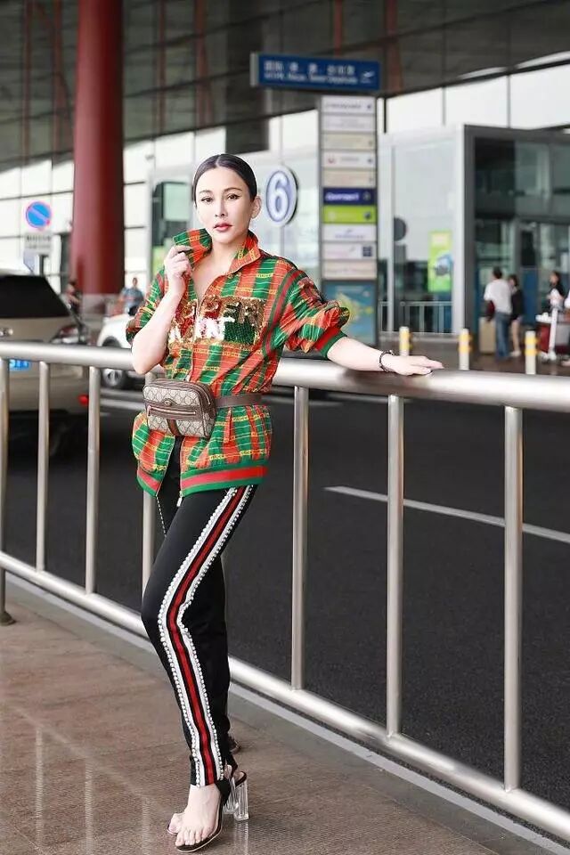 温岚的身高其实算不错的了,但是她还是选择了一双水晶款的高跟鞋,搭配上紧身的运动裤,腿是显现出来了,确实很长!