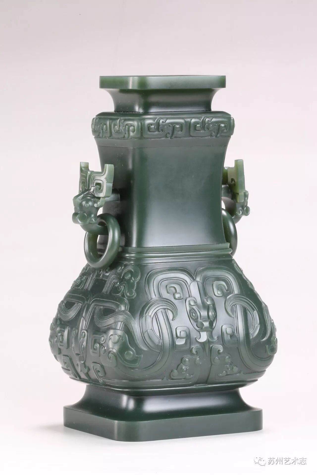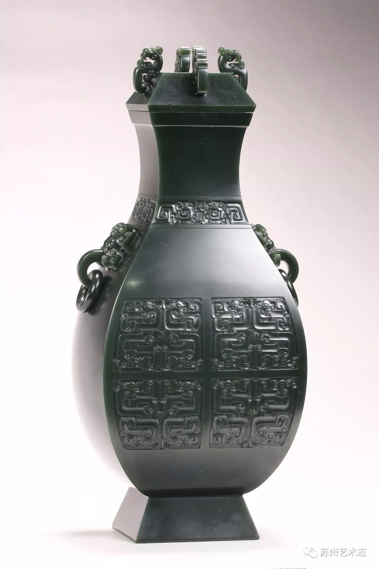 朱玉峰 朱玉林 青海青玉《交纹龙方壶》