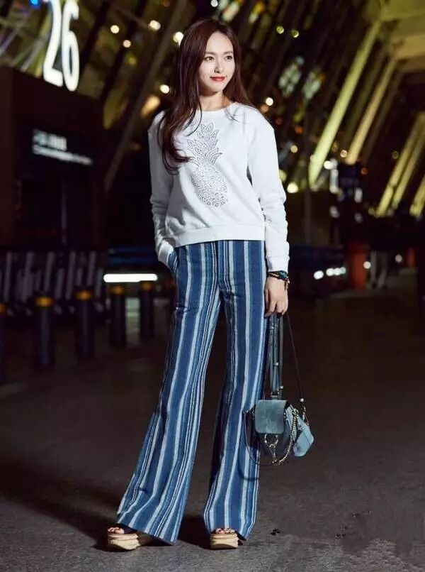 唐嫣以一身全新2017年春季服饰现身机场,针织外套搭配卫衣时髦又不失温度,条纹阔腿裤搭配坡跟凉鞋展现出了唐嫣长腿的优势,同时包与配饰在色调上也与服装相呼应,整体造型十分亮眼。