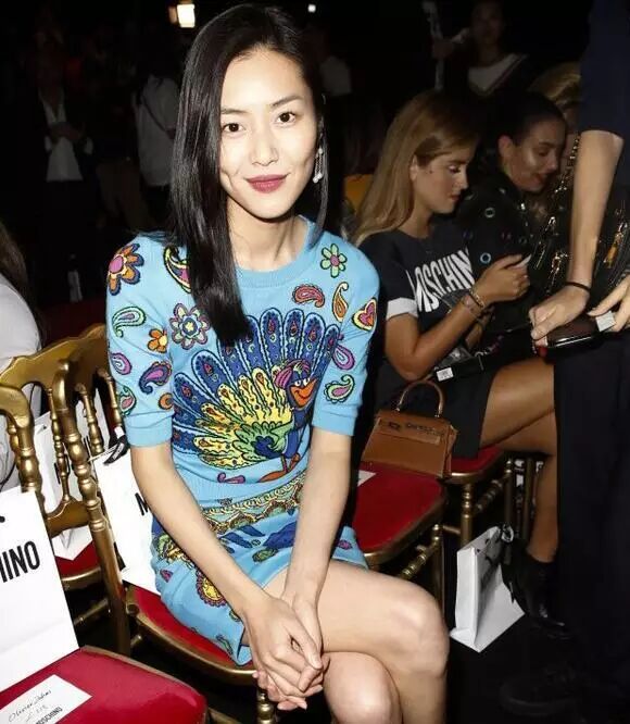 刘雯受品牌方邀请出席Moschino 2017春夏大秀现场,装扮的孔雀开屏一件式超短裙,甜美笑容搭配单侧珍珠细节的耳环,显得俏皮活泼。