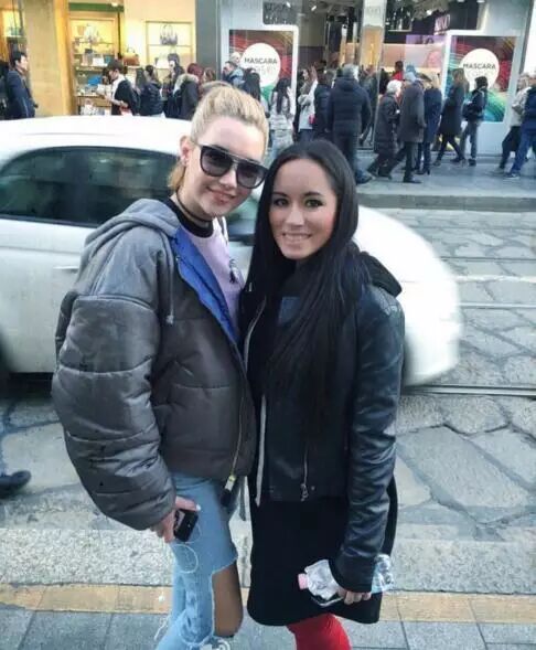 前往米兰,牛仔外套+高腰牛仔裤的街头风穿搭看起来活力十足。