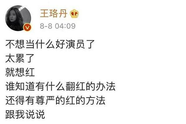 背着手风琴现身机场,发帖子寻找丢失的宠物鸭,三里屯开唱……多少有点刻意为之,求关注之嫌。直至前段时间,王珞丹醉酒半夜求助有什么翻红的方法,以一段“退圈宣言”上了热搜。