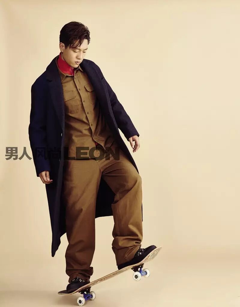 并非穿得花哨才代表男人对穿着的驾驭能力,相反,如果能把深色穿出丰富的感觉才是娴熟度的表现。深色外套绝对是让人轮廓清晰的必备单品。风衣/Song For The Mute,衬衫、高领毛衫、休闲裤/ 均为Lacoste,运动鞋/Jimmy Choo