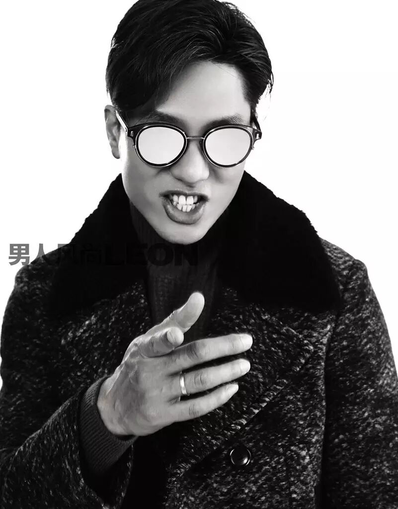 人贵直,文贵曲,深色着装的搭配明确干练地让男人焕发出迷人的成熟魅力。搭配学院派的复古眼镜,营造出男人谦谦君子之感。牛仔外套/Givenchy by Riccardo Tisci,毛衫/Fendi 平光镜/Dior Homme