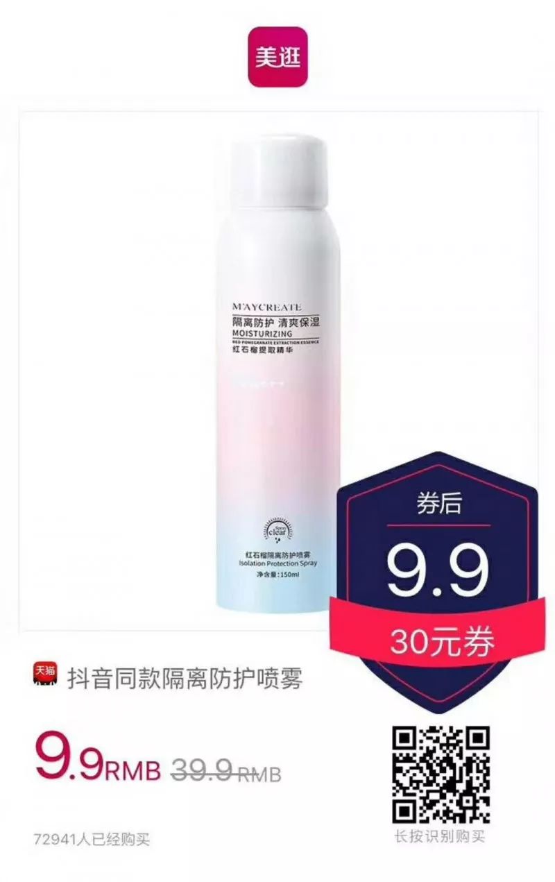 抖音同款隔离防护喷雾【券后价】9.90元,抖音网红夏日“渡劫”神器,权威质检,温和无刺激~一款能同时满足防晒+补水+美白提亮+定妆的喷雾。复制框内整段文字,打开[手淘]即可[领取优惠券]并购买