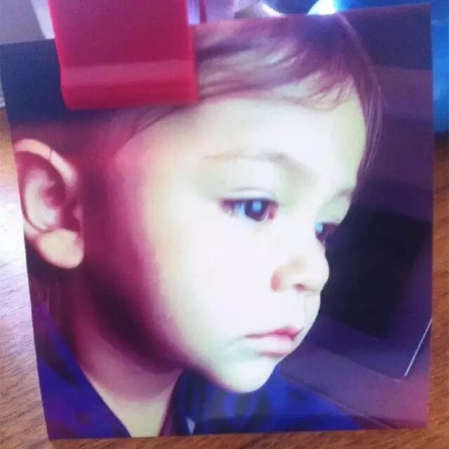 这张看得更清楚一点,真是把爸妈最好的基因都遗传了。眼睛够大眼皮够双,还有小jojo的鼻子高得简直可以逆天了好嘛!~