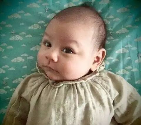 妹妹霓娜百天的时候,大眼睛双眼皮高鼻梁尖下巴颜值不要太高哦。只不过兄妹俩婴儿时期傻傻分不清楚啊,第一眼我还以为是诺一呢~