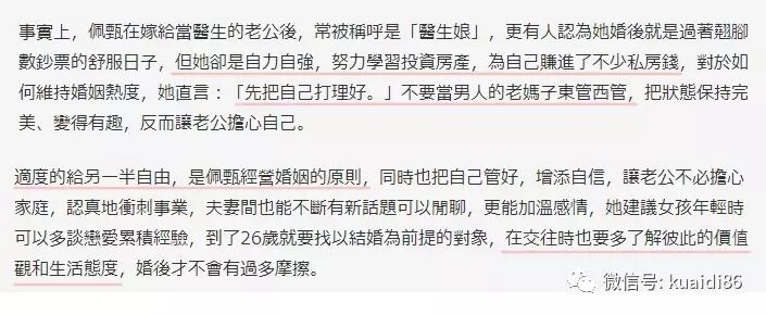 接受媒体采访,佩甄也透露自己维持婚姻的秘诀。