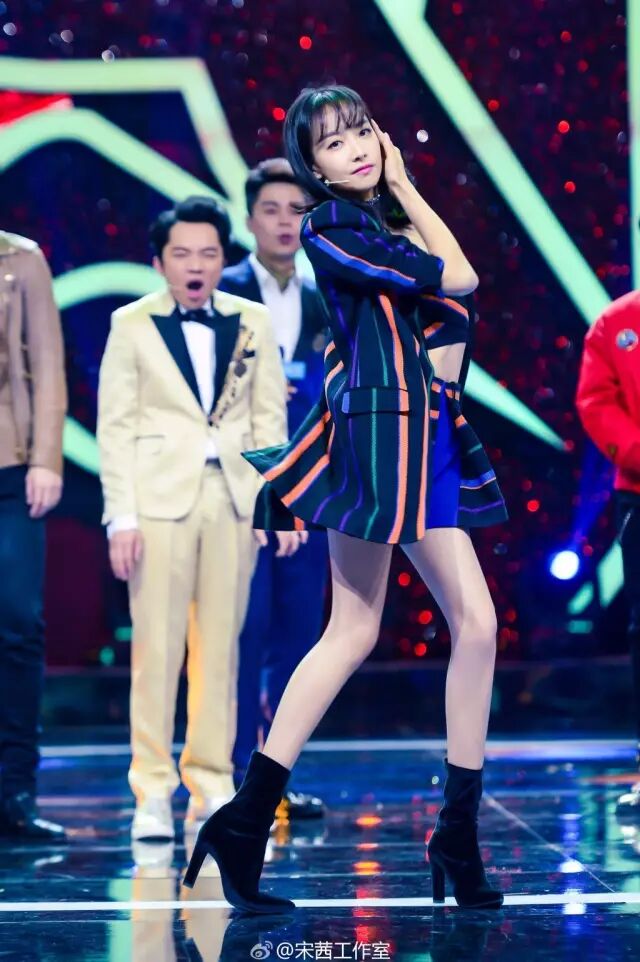 ▲王子文穿黑色收腰西装裙,搭配白色蕾丝穆勒鞋一展歌喉。身型娇小的她很适合驾驭腰线明显的外套,让她的比例得到了极大改善。