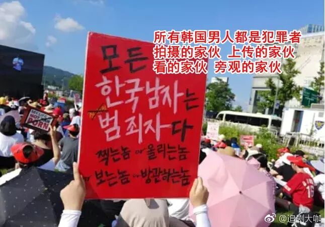 甚至镇臂高呼:所有韩国男人都是犯罪者,拍摄的家伙,上传的家伙,观看的家伙,旁观的家伙。