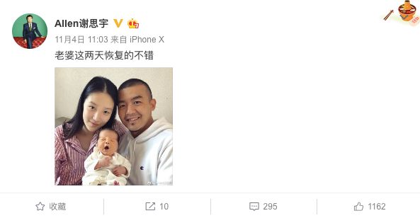 翻看谢思宇的状态,他已经结婚,而且还当了爸爸。俨然就是一位事业成功的好丈夫形象。