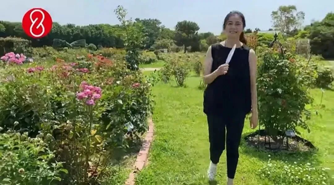 接着,她在草坪散步,不时低头去闻花香,一边走一边扑扇,虽然阳光不错,但看得出日本当地的天气很热。Yoyo的状态看上去还不错,但仔细看还是能够看出,她的身材与早年相比发福了不少。