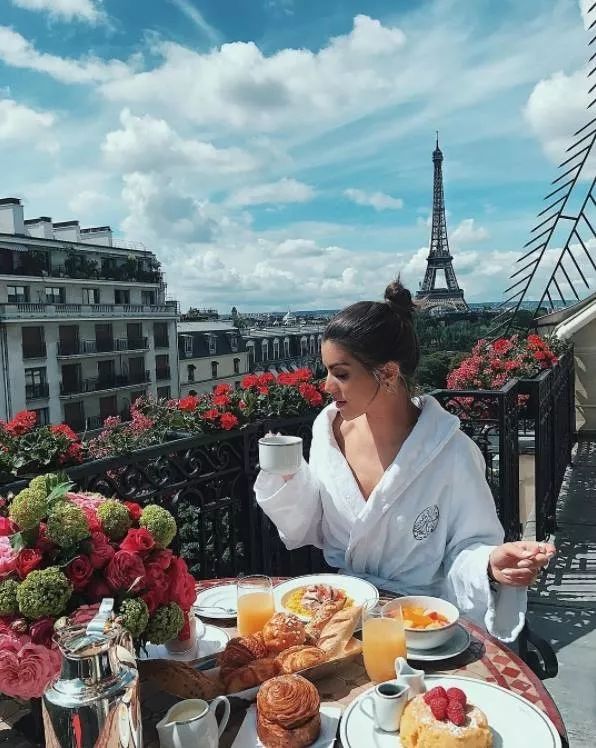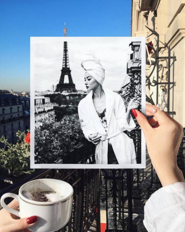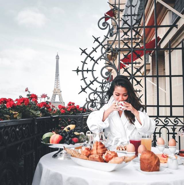 作为巴黎的外来客,酒店是明星们舟车劳顿之后报道的第一个地方,巴黎豪华酒店的标配是什么?铁塔、美人和阳台。经常看时装周的老司机们肯定都知道,这里的阳台是摄影师和明星们都迷恋的舞台,摄影师通常会把器材架进酒店套房,方便随时捕捉完美画面。