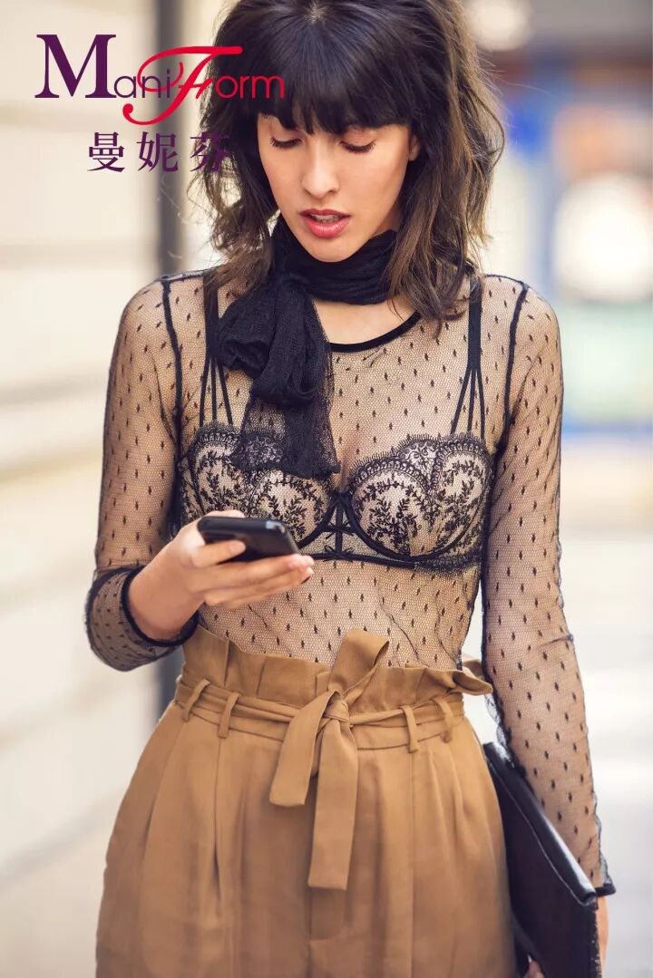 一步阳台小巧精致,呈一字型,法国女人喜欢在阳台上尽情展示自我;Balconnet(阳台文胸)穿上身也呈一字型,同样也是女性展示自我的“秀场”,两者有异曲同工之妙。本季,曼妮芬Maniform把以“一字型”为特点的经典内衣再次升级,推出“一吻巴黎”½阳台围内衣!在创新的“阳台围”的设计之上加上了全新的性感元素——睫毛蕾丝,睫毛蕾丝漫过内衣边缘,说不清道不尽的性感。
