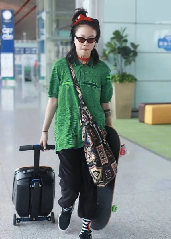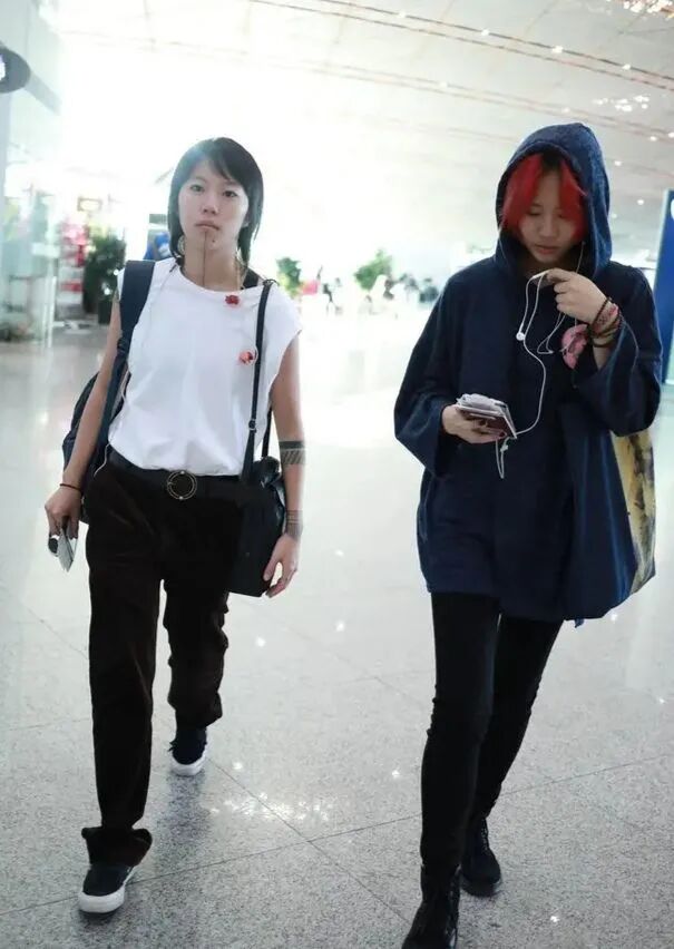 她都是怎么舒服怎么来了,白色的无袖装搭配黑色的裤子也很简约。虽然她的穿搭让人无法理解,但是她穿的舒服就行了,而且她真的是每次都穿得非常的自信。