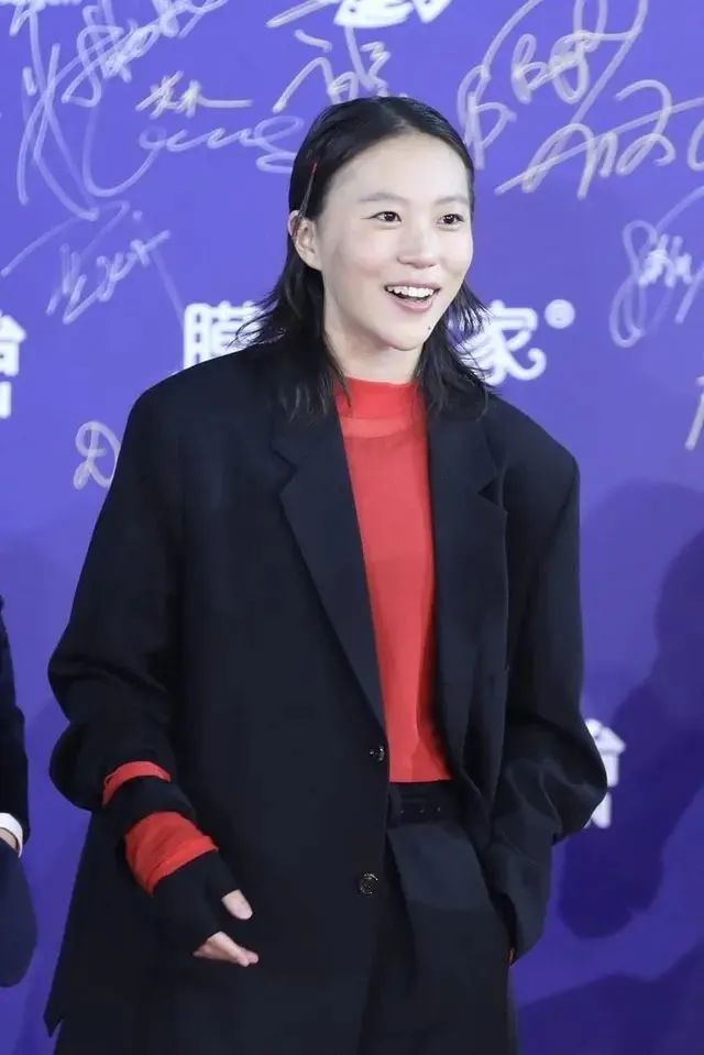 窦靖童穿上一件黑色的西装,里面搭配的红色的衣服真的很好看呢!认真打扮起来真的是美极了,虽然穿的普通,但是这样两个元素在一起就显得很时髦。而且她还是素颜出镜的。