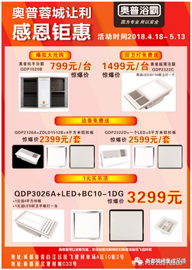 春季绽放生活新姿态,2018新品钜惠行动,安又琪与你相约奥普浴霸。。。。。。