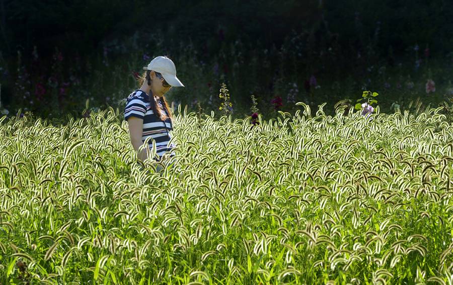 ▲ “在花海里殷洁如鱼得水,随意摆个姿势都像花儿一样好看。” 举手投足间都是周小林对妻满满的爱意