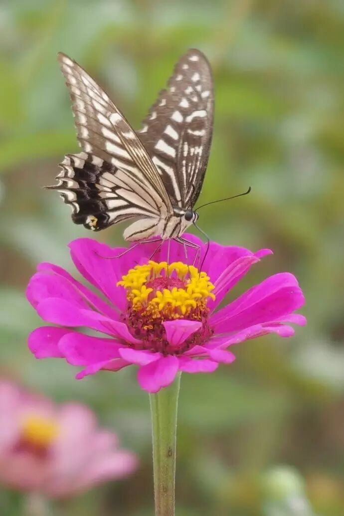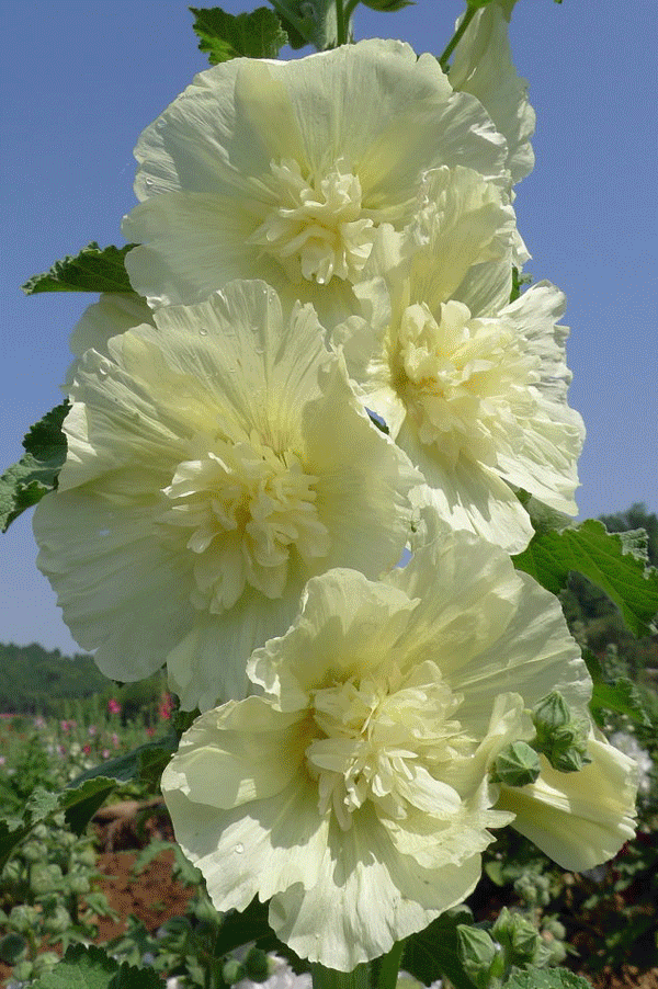 “翩翩蝴蝶成双过,两两蜀葵相背开”