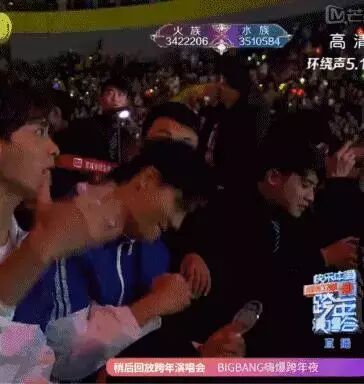 bigbang跨年演唱,无数明星不能与偶像同台肠子悔青。而李易峰、陈伟霆飞奔跑向看台,李易峰大写花痴脸,陈伟霆嗨到不能自已。