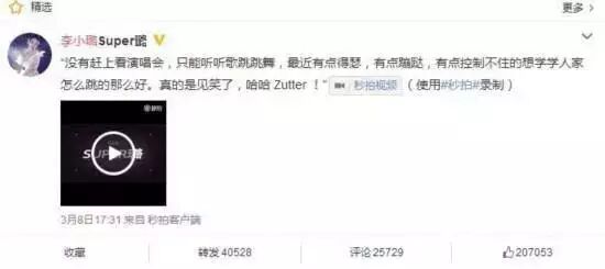 随后,李小璐微博晒出大跳bigbang舞蹈的视频。网友:这一家子还真是bigbang的真爱粉。李小璐的丈夫贾乃亮也曾在微博表示亲身去bigbang的演唱会。