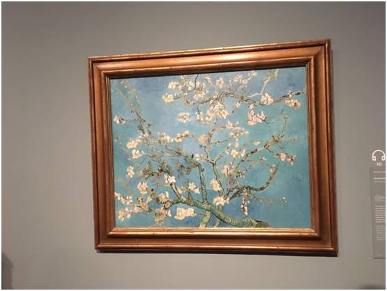 就像这幅杏花,是梵高生命的最后一年创作的,当时他的精神糟糕透了,但是这幅画却展现出了安静与祥和。而且背景的色调清新淡雅,在博物馆看的时候整幅画好像闪着光。梵高对日本的浮世绘很感兴趣,所以这幅画也带有日本版画的特点。
