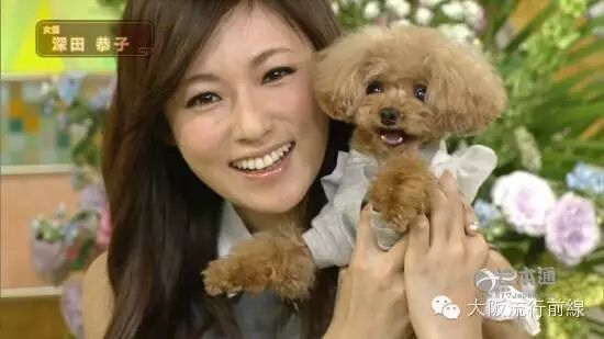 深田恭子曾表示爱狗多过爱男人,经常跟爱犬出双进对,常带狗到拍摄现场开工。