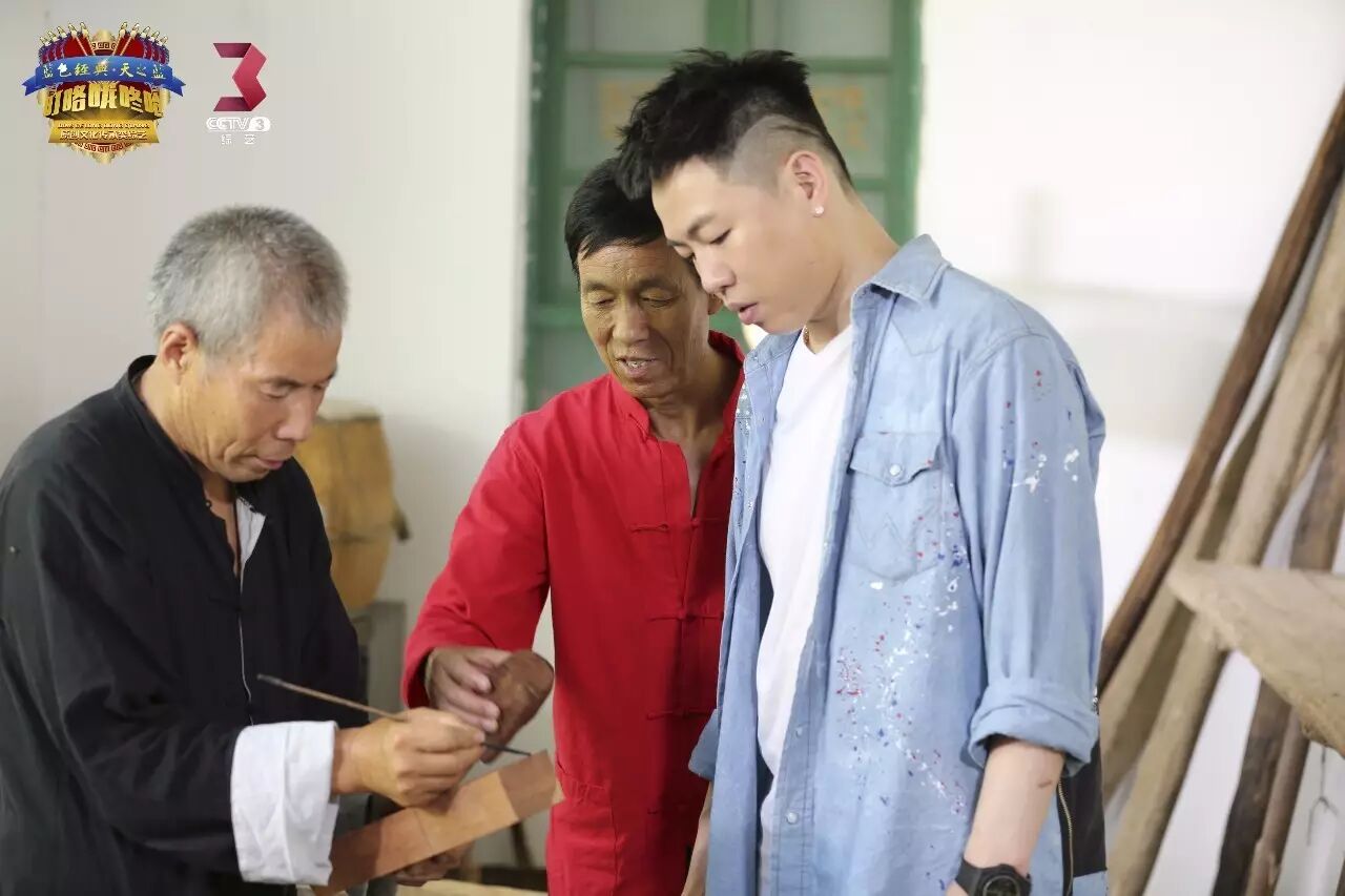 不仅能“喊”会唱,华阴老腔里用到的很多乐器都是老师们亲手打造的。胡彦斌了解完唱腔,便跟着老师们来到制作乐器的工坊,学习起了醒木的制作。看来要想掌握一门曲艺,真的需要多才多艺才可以。