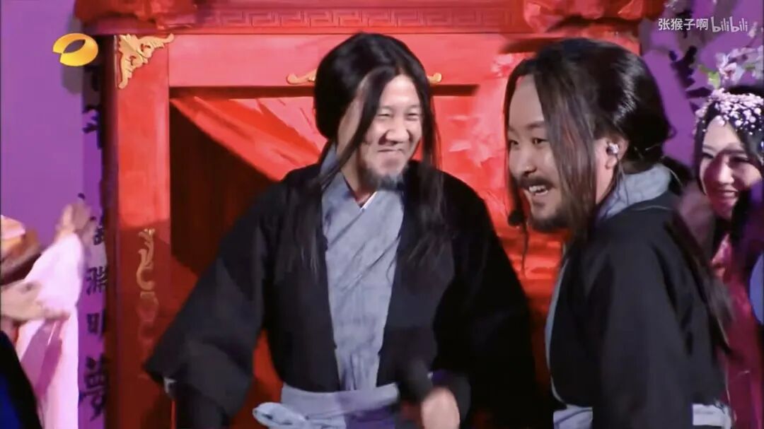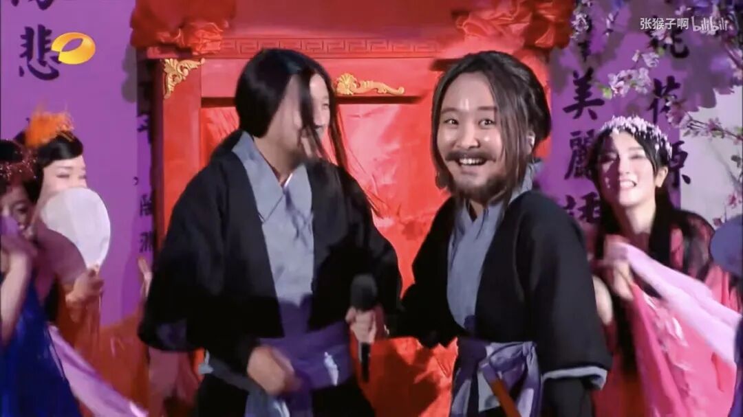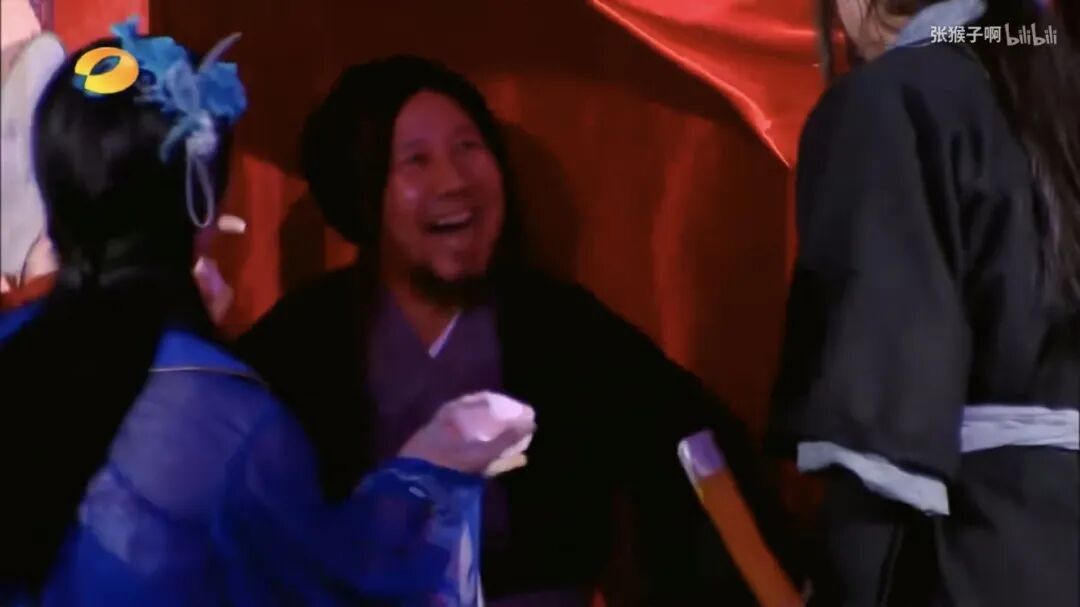 还有《百变大咖秀》里腾格尔也是“常驻嘉宾”,有一次贾玲模仿他的《桃花源》MV,演得正开心呢,没想到一掀帘子对上了腾格尔看傻子似的关爱眼神,贾玲直接吓傻了。