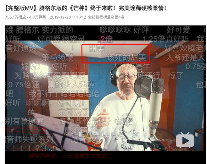 你说咱大爷不会柔情吗?你错了,当大爷用轻盈跳跃的声音唱出《芒种》的同时,弹幕里也为大爷那该死的甜美闪瞎了腰。