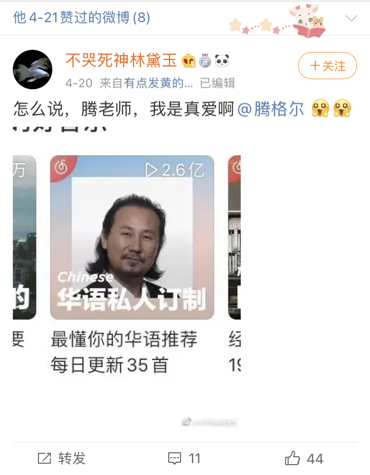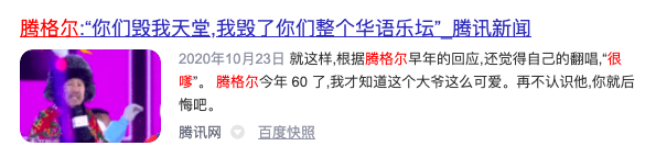仔细想想腾格尔不管是从前还是现在,他的态度他的性格他的表达绝大多数都是从音乐出发的。这种用本职工作跟观众交流的方式是一种很好的尺度,即使新鲜感过去,也不会让人觉得不知所云,所以即便他上了不少综艺也玩过不少梗,但也很少会出现综艺咖之类的评价。