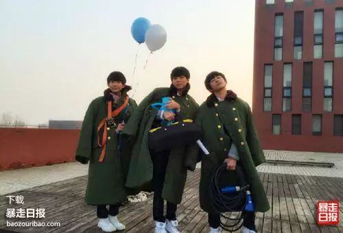 三小只竟然也可以撑起军大衣,可见个子挺高。