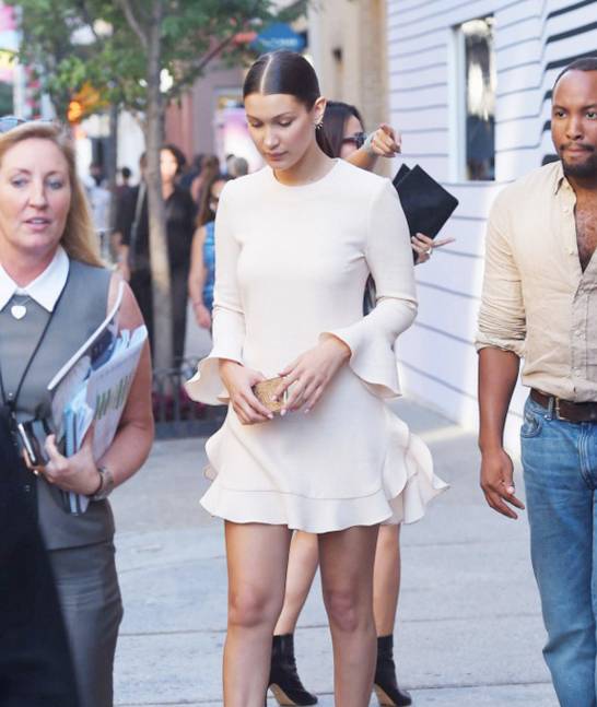 其实说到在胸前做文章的这种穿法,我们在生活中还是蛮常见的。个人感觉这样的一字肩的荷叶领,其实是好看的!