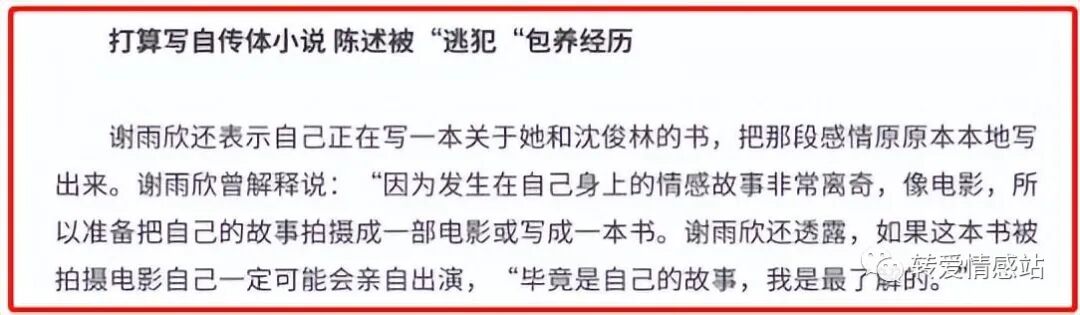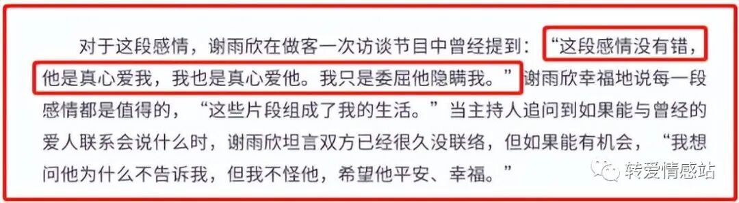 多年后再次谈及这段感情,谢雨欣已经完全放下了,她还说自己打算出一本书,把这段感情经历写下来: