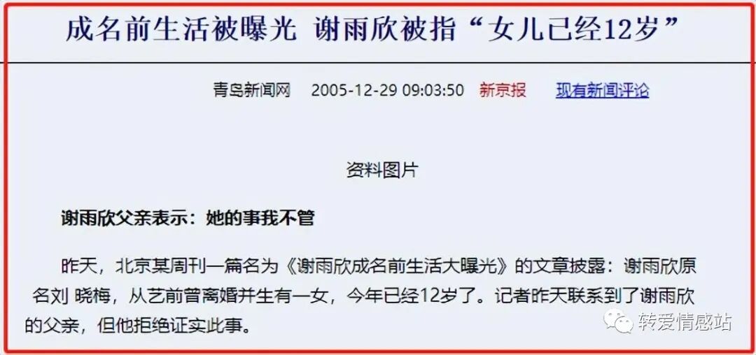 结果2005年,谢雨欣突然被爆料“已经结婚,并且女儿已经12岁”,大家才知道谢雨欣以往的经历。