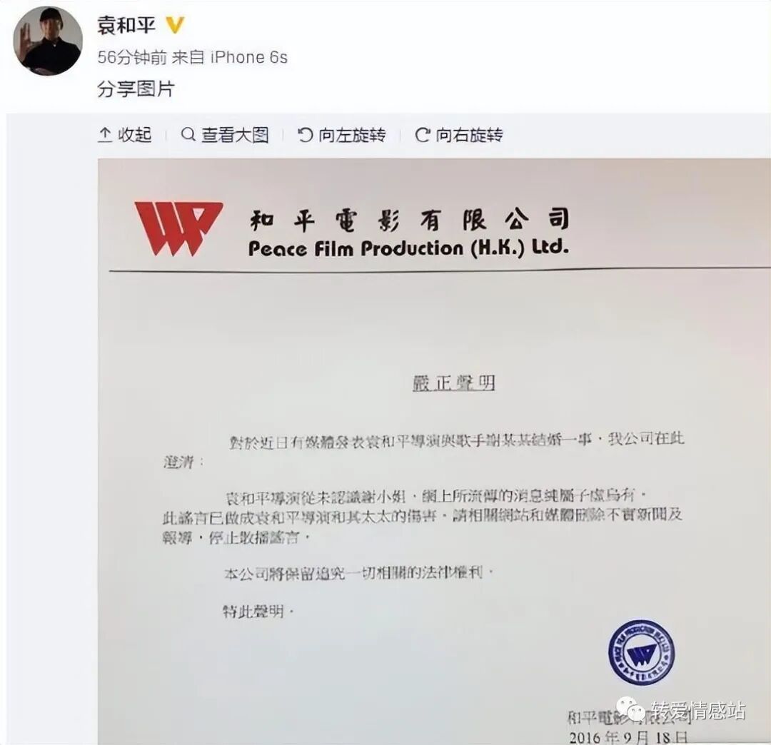 有传言称“袁和平和谢雨欣在2014年的时候结婚……”