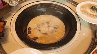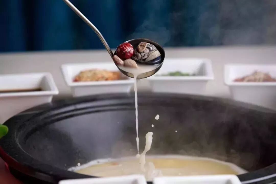 水蒸鸡锅的汤底是用鸡骨长时间熬制的